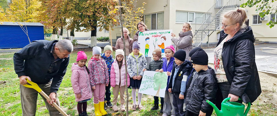 Осенью 2024 года по инициативе Совета отцов, на территории детского сада выбран участок для создания экологической безопасной среды. Второй год подряд мы высаживаем клены, чтобы наших детей окружала красивая, здоровая, экологически безопасная среда, чтоб наш детский сад и прилегающая к нему территория становились всё более зелёными.